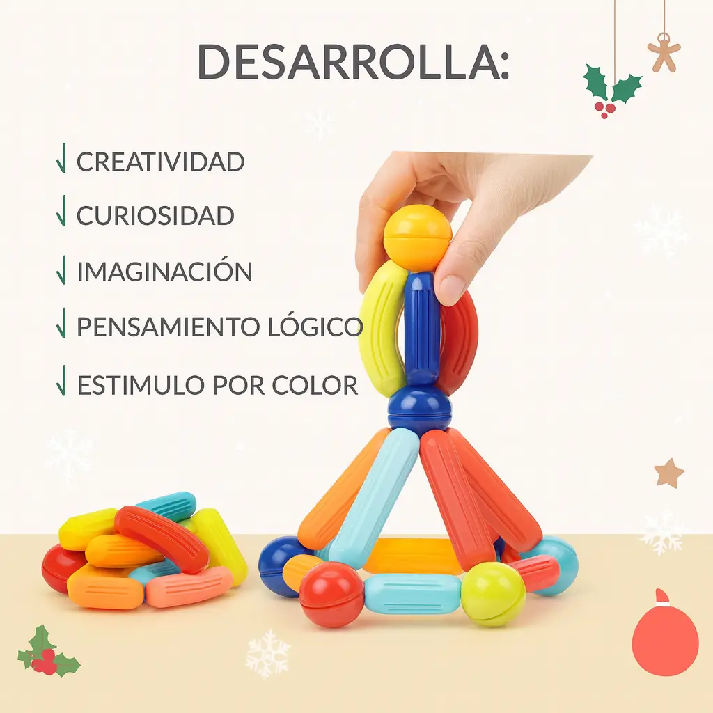 Despierta la creatividad con estos bloques magnéticos de 96 piezas. Cada pieza mide 7 cm, lo que los hace seguros para los más pequeños. Perfectos para construir, aprender y desarrollar la imaginación, la coordinación y el pensamiento lógico de forma divertida y educativa. 🧲✨