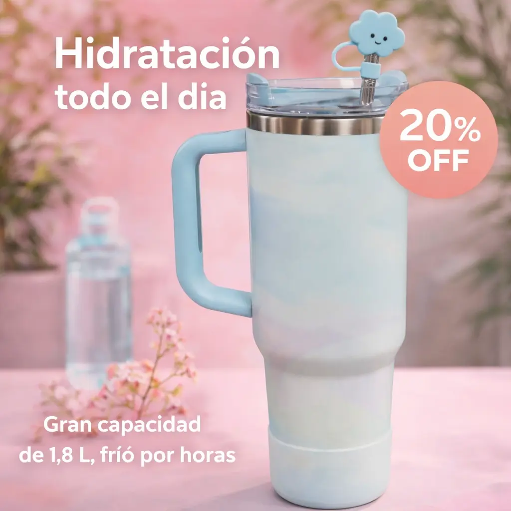 El Vaso Quencher de 1,18 litros combina estilo y funcionalidad para acompañarte todo el día. Su aislación térmica de doble pared mantiene las bebidas frías o calientes por horas. Incluye mango ergonómico, tapa giratoria y bombilla reutilizable, perfectos para usar en casa, el trabajo o al aire libre. Disponible en varios colores y con diseño moderno que destaca en cualquier ocasión.